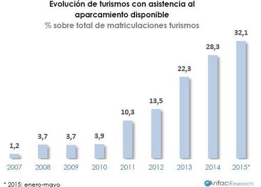 Actualmente, 19 marcas ofrecen el sistema de asistencia al aparcamiento, lo que representa el 86% del mercado total de turismos. En los últimos cuatros años su disponibilidad ha ido aumentando, pasando de los 1 de cada 10 turismos con asistencia al aparcamiento en 2011, a la presencia actual en 1 de cada 3 turismos vendidos en los cinco primeros meses del año 2015.