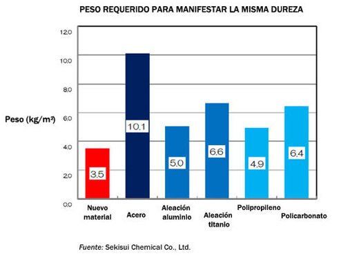 Sekisui Chemical, una compañía japonesa, ha desarrollado una resina que es igual de resistente que el acero, pero que tiene mucha menos masa.